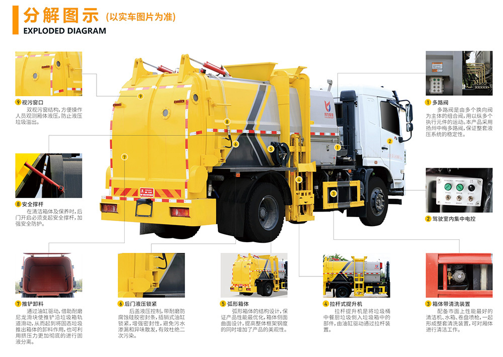 (5)后盖液压开启锁闭装置,插销式油缸紧锁。特制加强型硅胶橡胶条密封,